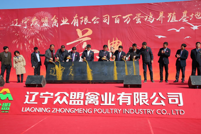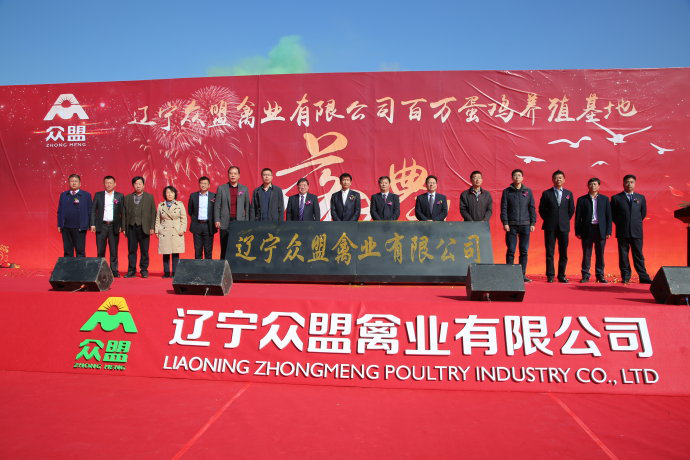 2018年10月19日上午10点18分,辽宁众盟禽业有限公司百万蛋鸡养殖基地落成庆典在新民市公主屯镇何家屯村隆重举行.
