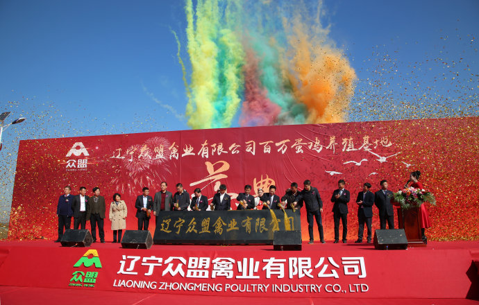 2018年10月19日上午10点18分,辽宁众盟禽业有限公司百万蛋鸡养殖基地落成庆典在新民市公主屯镇何家屯村隆重举行.